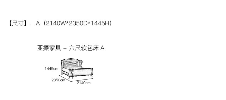亚振家具 - 六尺软包床 产品尺寸/示意图