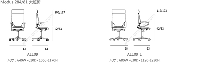 Modus 大班椅 系列尺寸/示意图