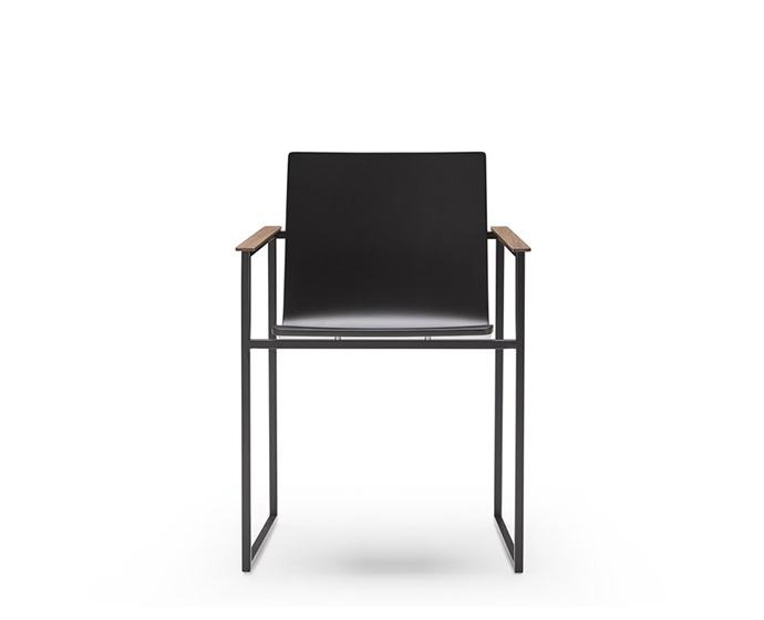 带扶手的雪橇漆椅 COPENHAGUE是涂漆鞋椅子与收集的涂漆的金属框架和核桃臂BlackTone的JMM