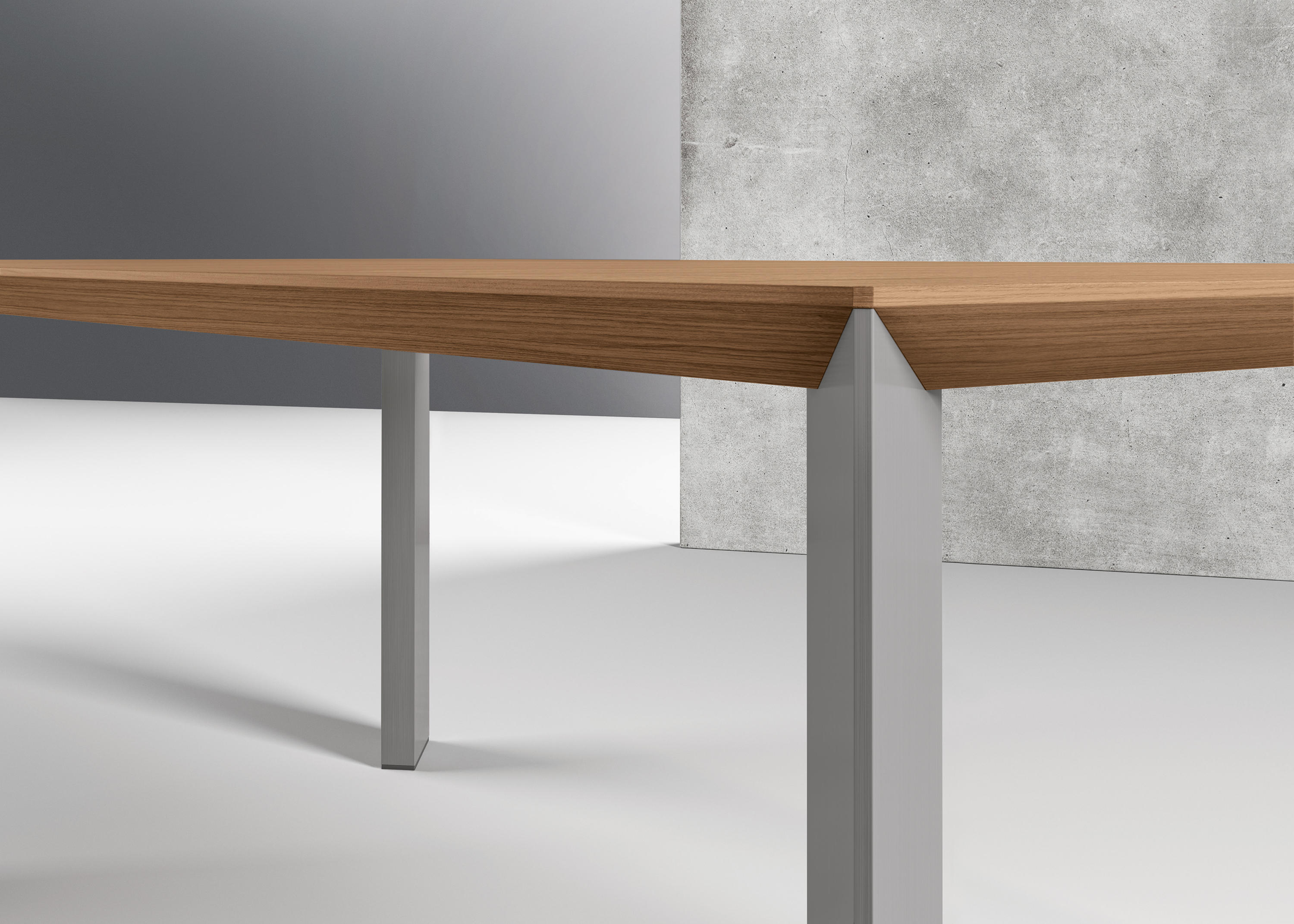 创新的设计带来独立的美观的外形。这款Paper的桌子拥有两个引人注目的设计元素,一是桌子边缘的底部是向内倾斜的,使其表面优雅轻盈(桌面厚度为38毫米);二是桌腿呈细长的三菱柱状。这两个设计都可以使整个桌子看起来线条鲜明,线性或者狭窄,这取决于角度的选择。