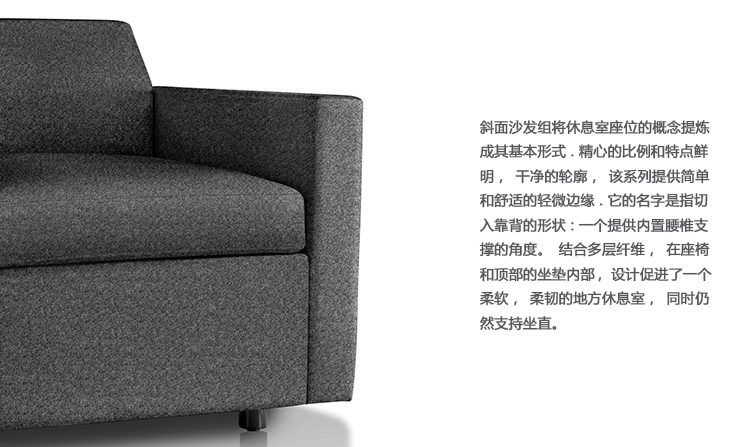 BassamFellows的设计采用了完全的软垫框架,没有明显的腿部,BassamFellows的设计意图是斜面提供一个简单的靠背——一种永恒的美学,与Herman Miller的现代经典相协调。