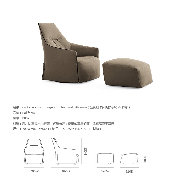 创意家具 - 坐具|休闲椅|办公家具|设计师家具|圣莫尼卡休闲扶手椅&脚踏