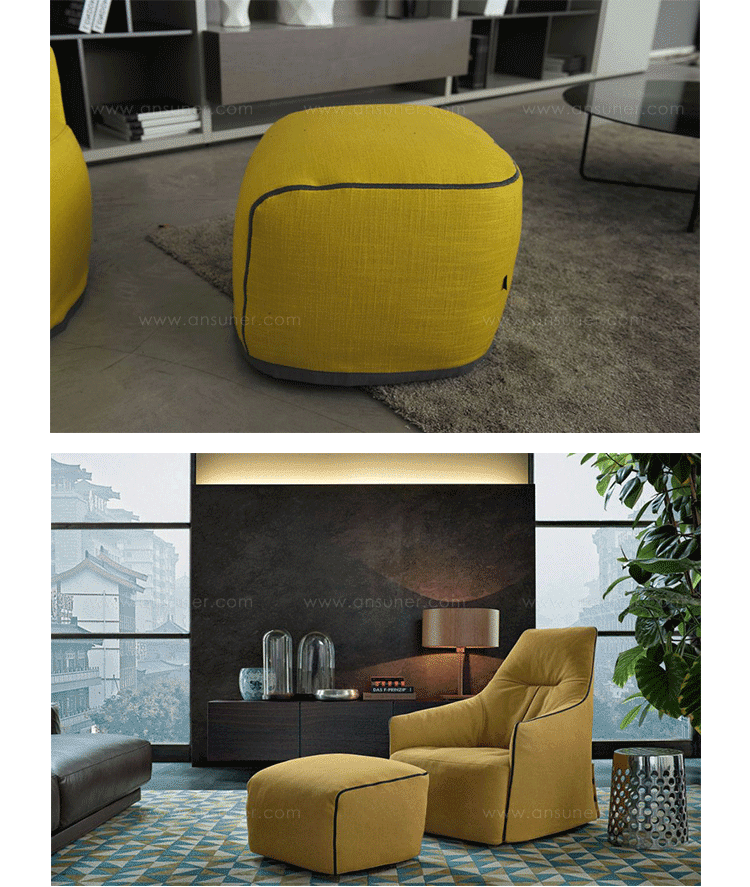 Poliform,Pouf Santa Monica Lounge:A very enveloping and comfortable pouf,which founds its singularity in the seasonal coverings.Its style is casual and chic;casual for its comfort and unformal character and chic for the wide range of coverings recalling Poliform's universe.Santa Monica is a "mix and match"of fabric,cushions and accessories.