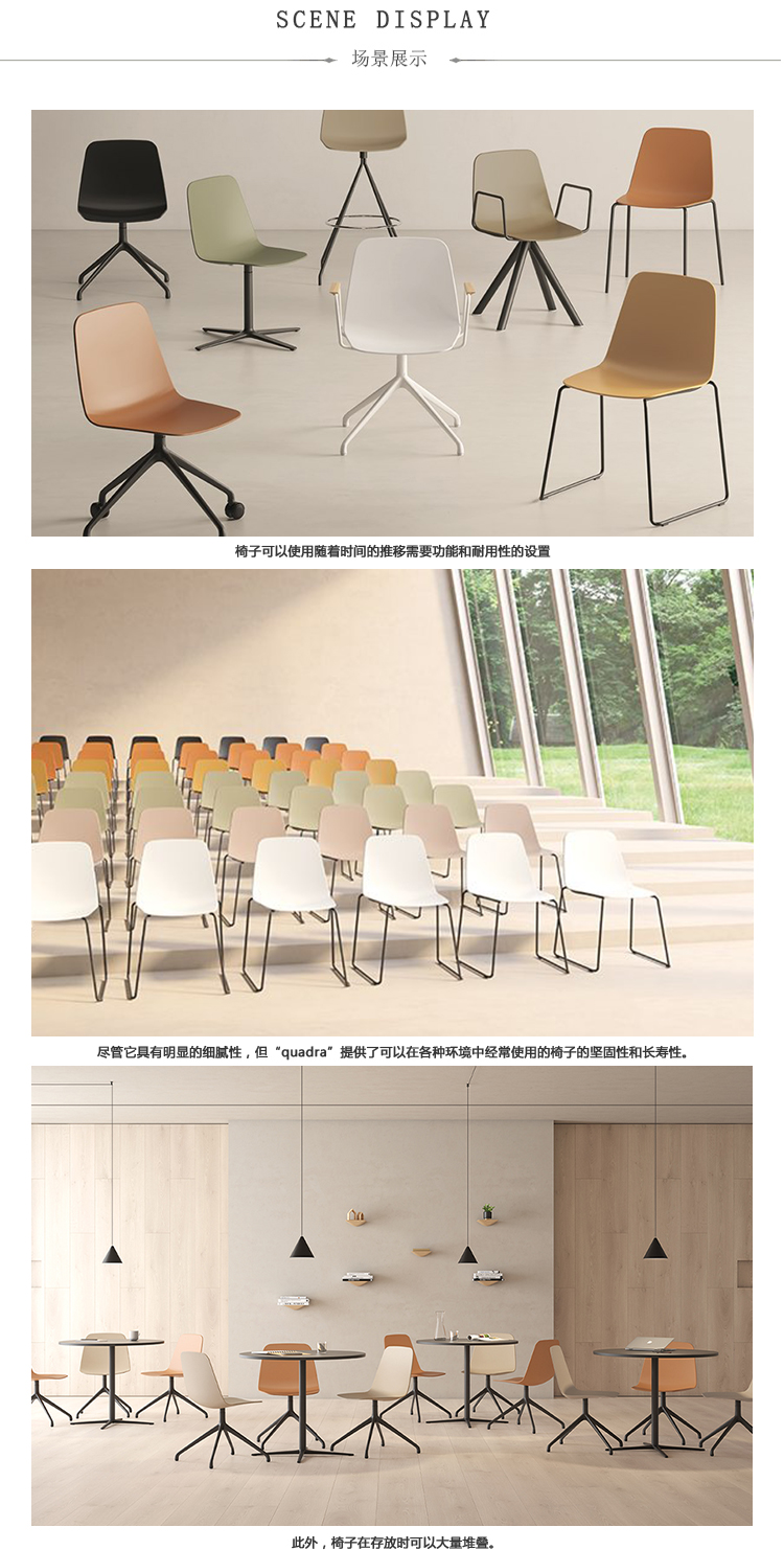 这种新的椅子的版本保持菱形的座椅是自2012年以来在该系列中看到的Maarten系列的特征。增加的功能包括各种基座(四条腿,雪橇,旋转,金字塔,轮式......),并且可以选择堆叠其中一些,非常好共享空间的附加价值。随着Maarten Plastic的加入,VíctorCarrasco通过设计领域加强了他的发展轨迹,创造了既舒适又实惠的标志性,永恒的和地中海风格的设计。耐用的设施,但在家中欢迎。