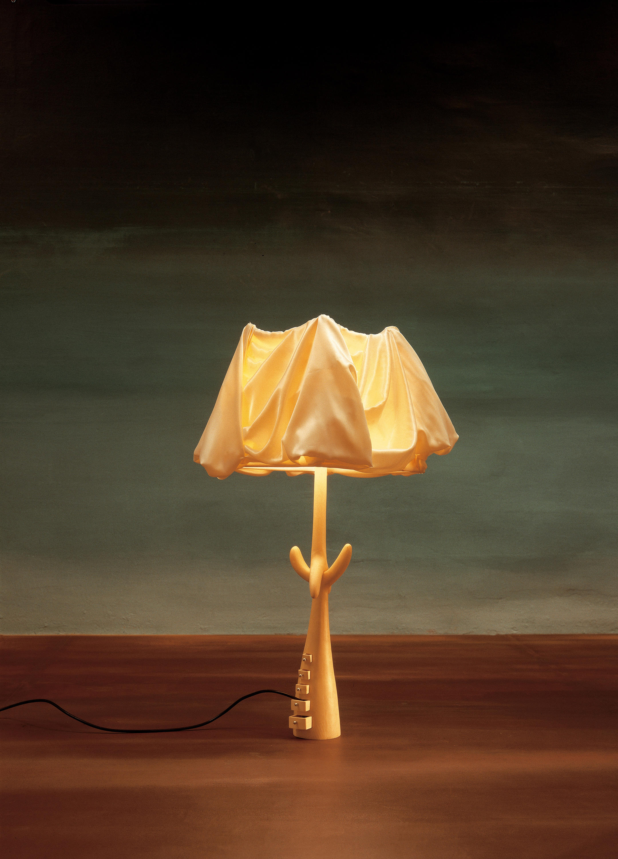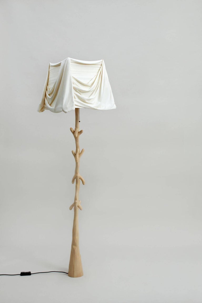 浅漆榉木支撑架。象牙色的棉和人造丝阴影,手工制作。