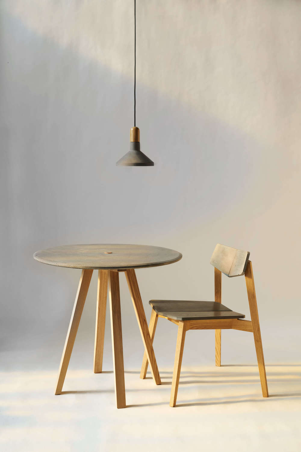木材与榫,古老的材料传统的工艺;水泥与螺丝,现代工业文明发展不可或缺的载体。它们的碰撞演绎着新的可能。 以榫结构将凳子腿链接,并形成十字托架支撑水泥面板,最后通过螺丝紧固并紧压榫托架,化解了可拆卸榫长时间使用所带来的磨损与松动,结实耐用。