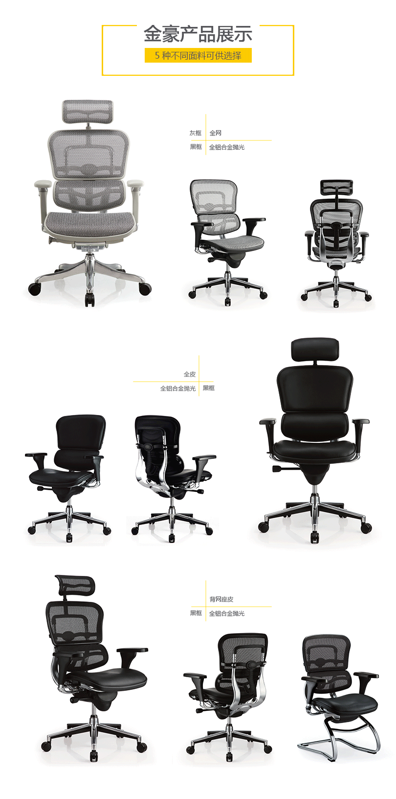 "金豪办公椅是一款符合人体工学的全功能性办公椅,力求使用者能充分理解其人性化的设计及达到最舒适的调节。