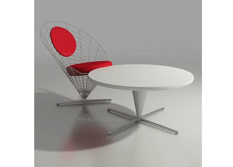 Cone Table(锥形台)是丹麦著名工业设计师Verner Panton设计的经典作品。Cone Table(锥形台)有着圆锥形的支柱和十字型不锈钢脚架,Verner Panton设计的锥形台可完美的搭配其同样式锥形椅或心锥形椅,外形独特,结构简单。当然,因其广泛的协调性,其看自由组合搭配其他休闲椅、 扶手椅和沙发,都不失现代,时尚和美观。