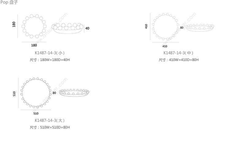 Pop 盘子 系列尺寸/示意图