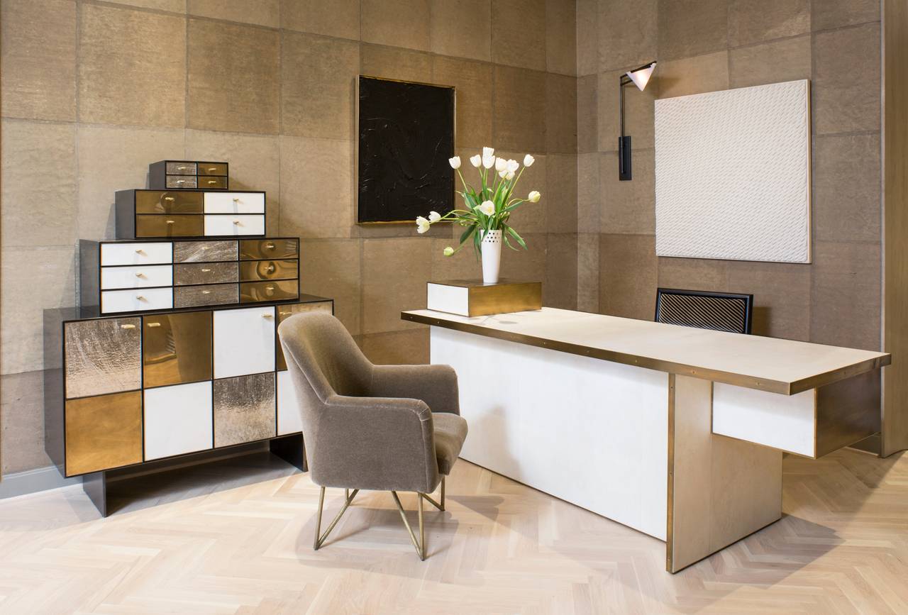 这款现代而独特的作品由石膏和坚实的青铜框架组成,汲取了Kelly对几何形状的喜爱,丰富的质感和大胆的意想不到的色调。