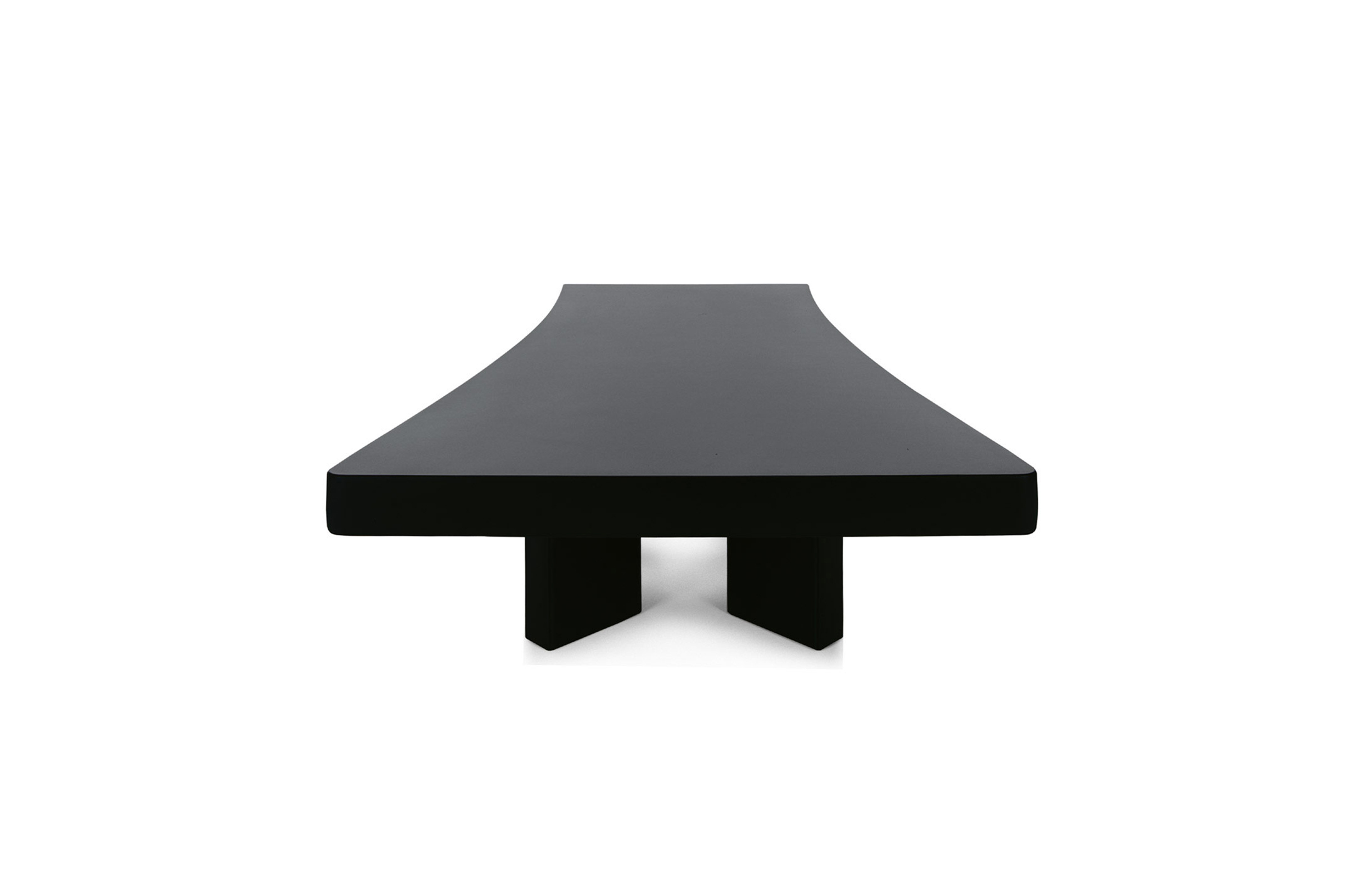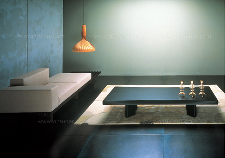 采用哑光黑色的珍贵木材或黑色实木橡木或美国黑胡桃木制造的矮桌。桌面厚度和凹面刻画了正式用语中的模型特征,并创造了令人讶异的轻盈感。该款矮桌是于1969年为日本驻巴黎大使馆设计的,这款咖啡桌是技术和中继合成的胜利。