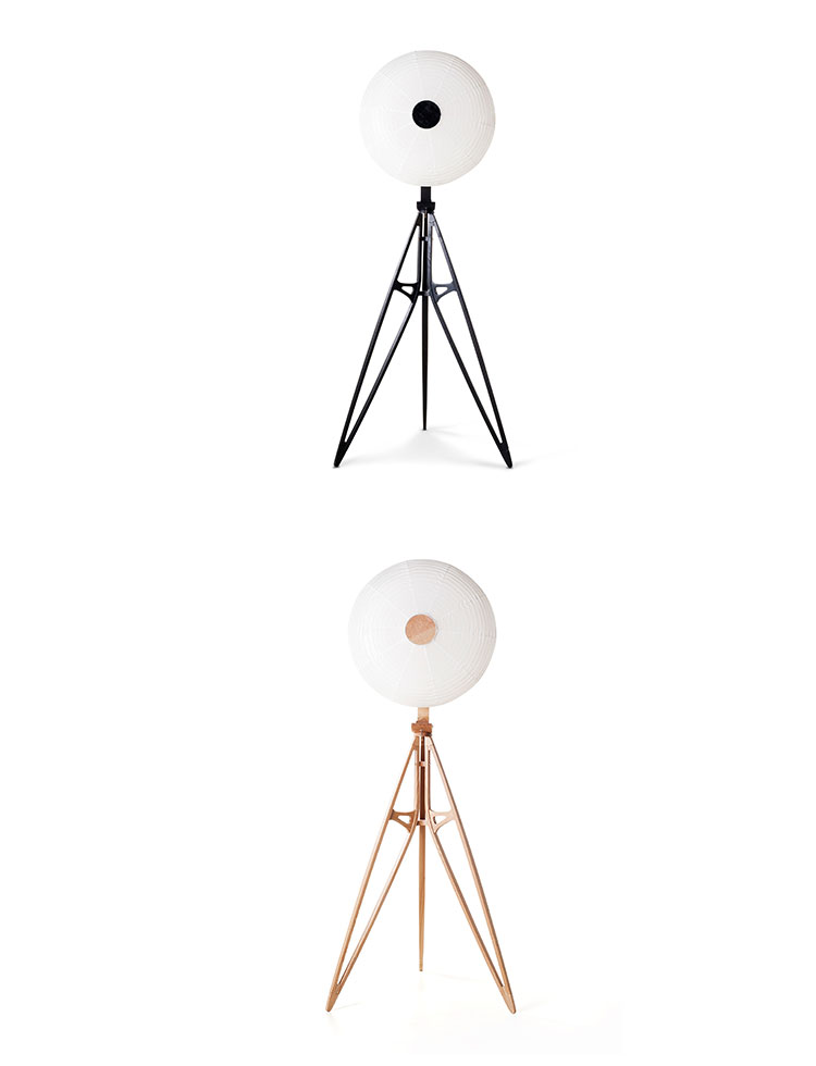 Kyoto系列是取材自核桃木或白蜡木制作的落地灯系列,以致敬京都悠久的木匠工艺和日本航空早期发展史。这款落地灯的结构设计灵感源自日本玩具飞机的精妙构造,设计师遴选出其中最为特别的一款作为设计参考,它是曾参与过1911年日本航模比赛的吉田飞机,它是一款装有双逆向推进器的A字型飞机,当时因成功飞越东京隅田川而闻名。