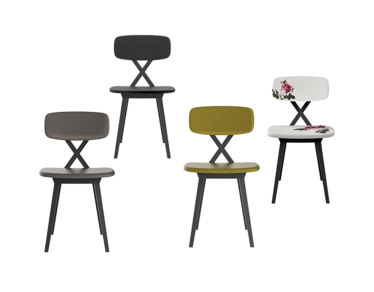 由Nika Zupanc设计的X椅子与标志性的“X”形状相得益彰,表现了背部支撑,座椅和靠背柔软的线条,丰富了新的经典花卉装饰。