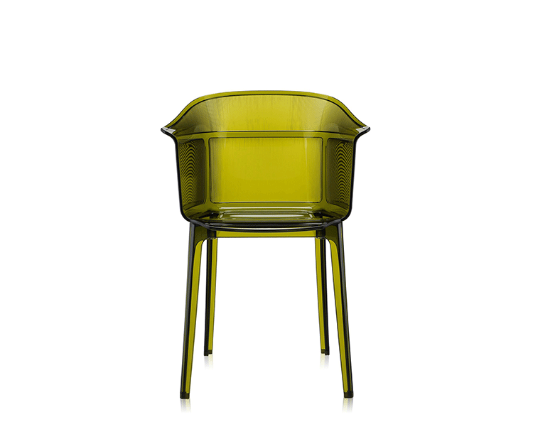 Papyrus Chair(纸莎草椅)是由Ronan & Erwan Bouroullec法国兄弟设计组合于今年为Kartell公司设计,并且在本次的米兰家具展中进行了展出。该设计的灵感来自于一把结构鲜明的古老座椅Linear,座椅本身非常舒适且重量很轻。其共有透明、黄、绿、紫、烟灰、棕、蓝和红八种颜色。这把椅子结合半透明的脚架,脚架“打磨”纤细的卵石状颗粒,并延伸至整个靠背的外轮廓,线条柔软和舒适。和整个结构都是透光的。因惊喜的做工和颜色的运用,使其非常吸引人。