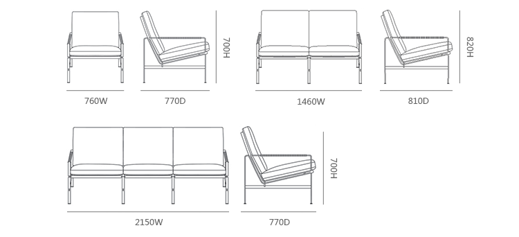 双座: 1460 w | 810 d | 820 h