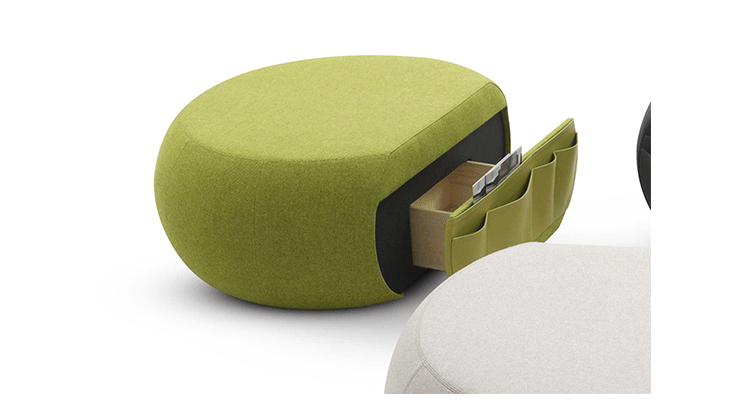 "Edam Seating Element(干酪座椅元素),荷兰室内设计师 Gert Batenburg极富创意的作品,表达了设计者想把家具融入每一个生活环境的决心,是一款多功能的家具,可用作座椅,也可以用来储物,。交感神经圆的弧面上,可供你居坐,并增加脚部的舒适感。最特别的是有一个可选的抽屉来存储所有零星的物品,比如遥控器,智能手机、 平板电脑、 期刊和报纸,慵懒而又方便。Edam Seating Element(干酪座椅元素)无论用在家庭,办公环境,候车厅,酒店等任何地方都是非常合适的。