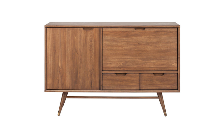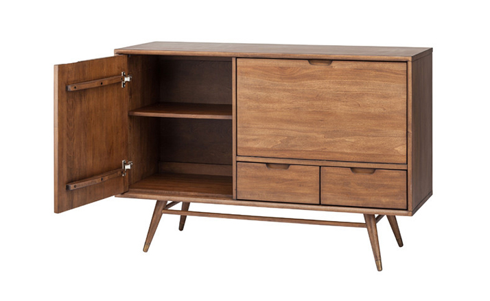 janek sideboard(janek餐具柜)是非常受欢迎的现代斯堪的纳维亚设计,是Kardiel公司制作的经典实木家具,左门具有内部可调式搁板。Finn Juhl和 Arne Vodder 最先尝试胶木和天然木的组合运用。这是大胆的创新,他们结合传统的新鲜的新兴技术与现代主义的概念。制作采用精选MDF板基材胡桃木或水曲柳木皮贴面、胡桃实木或水曲柳实木脚架、环保净味油漆喷涂,做工精湛。