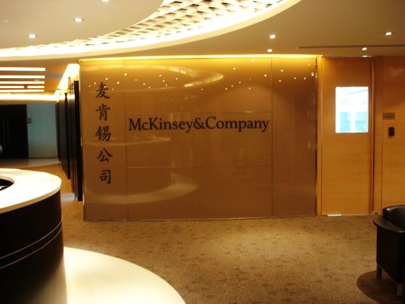 麦肯锡采取“公司一体”的合作伙伴关系制度,在全球44个国家有80多个分公司,共拥有7000多名咨询顾问。麦肯锡大中华分公司包括北京、香港、上海与台北四家分公司, 共有40多位董事和250多位咨询顾问。在过去十年中,麦肯锡在大中华区完成了800多个项目,涉及公司整体与业务单元战略、企业金融、营销/销售与渠道、组织架构、制造/采购/供应链、技术、产品研发等领域。